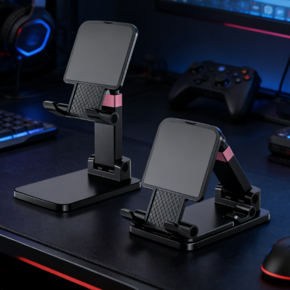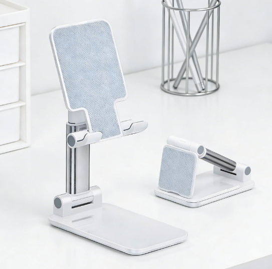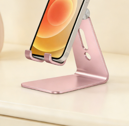 • Desktop Phone Stand, Adjustable Height and Angle Design, Non-Slip Base, Compact and Portable
