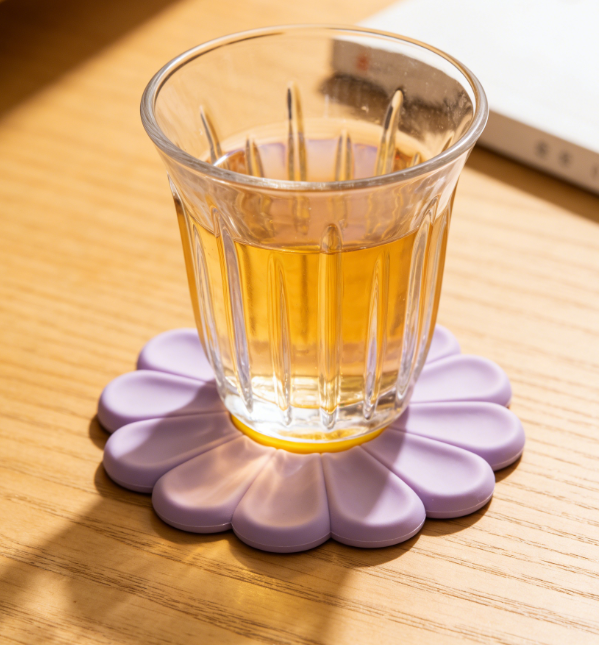 Flower-Shaped Silicone Heat Insulation Mats, 4-Pack, 6.7 inches, heat-resistant and non-slip, can be used as pot holders and coasters