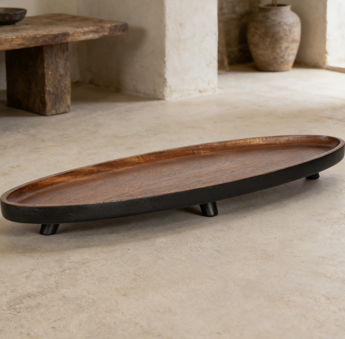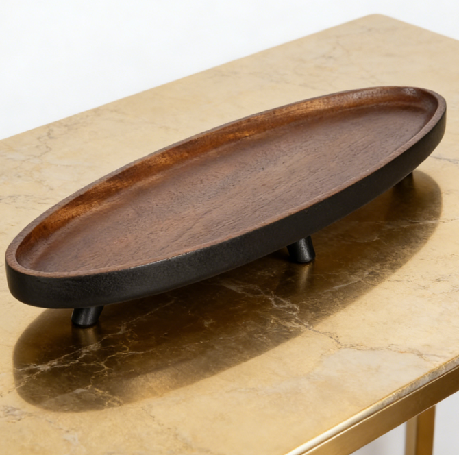 Oval Solid Wood Decorative Tray | Tray with Base Design | For Coffee Table and Home Decor